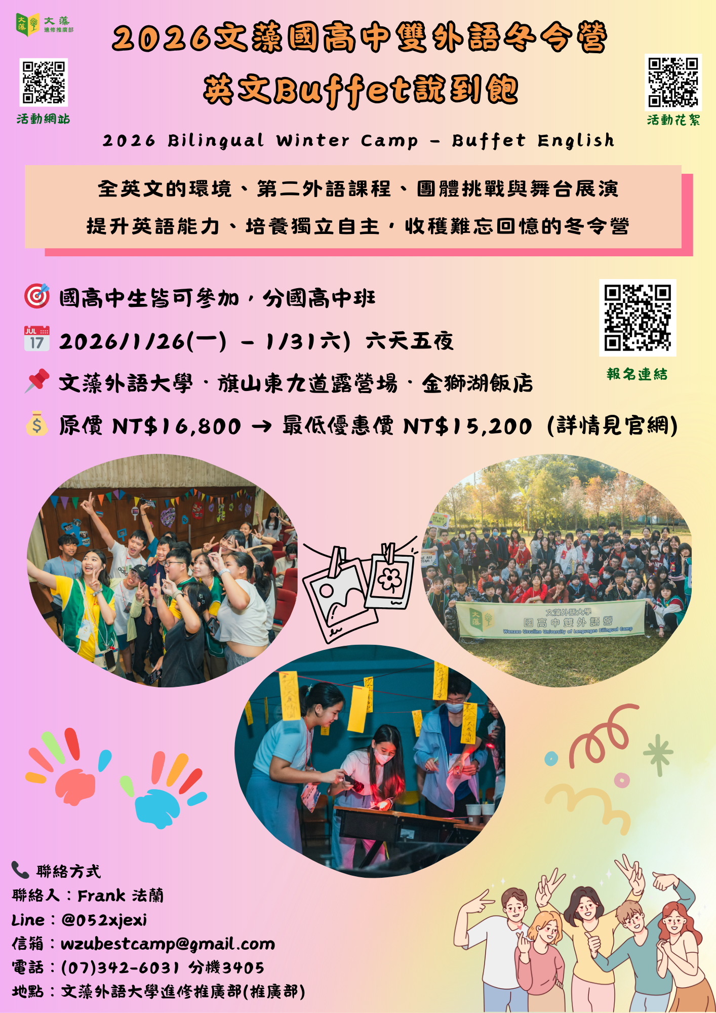 文藻學校財團法人文藻外語大學辦理2026文藻國高中雙外語冬令營